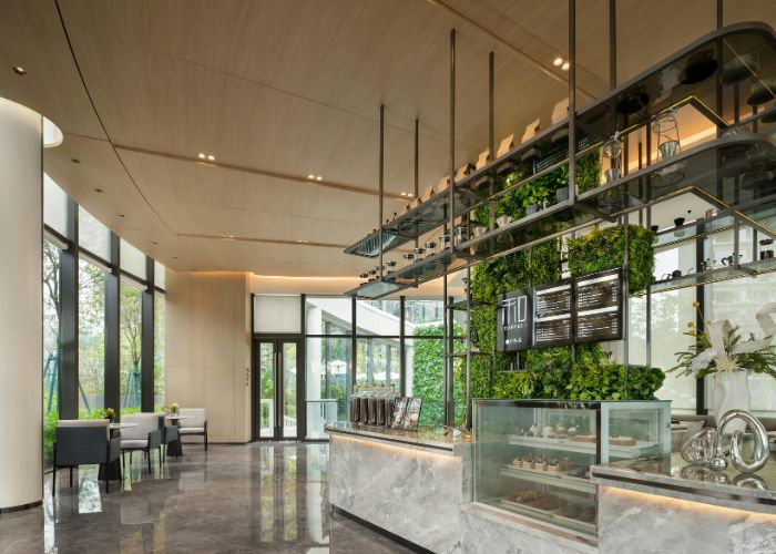 店舗内装において、顧客が心地よく過ごせる空間づくりも重視されています。「バイオフィリックデザイン」は、植物や水、自然光を取り入れた設計により、ストレス軽減やリラックス効果を促進し、特にカフェや美容室で人気を集めています。